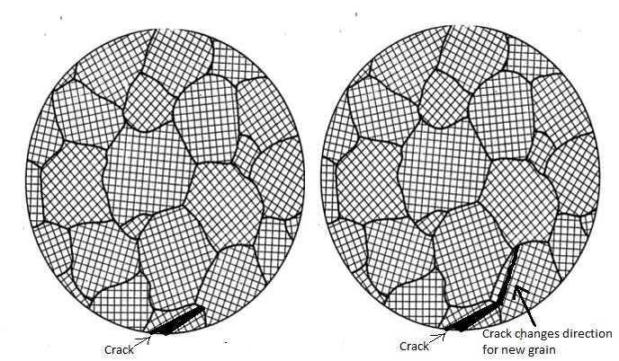 to less difficult crack propagation throught the material