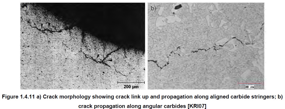 Steel is typically rolled to the final thickness, and carbides and impurities are oriented along the rolling direction. This leads to segregation of carbides in “stringers” that can be preferential bands for crack formation [15]: