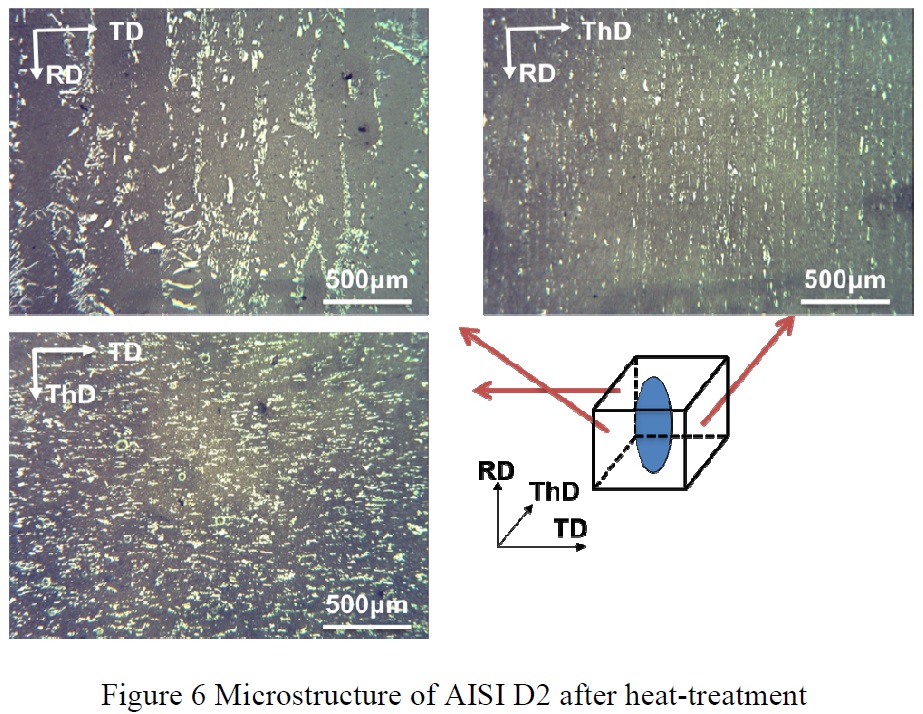 “RD” is the rolling direction, “TD” is the transverse direction (perpendicular to the rolling direction), and ThD is the thickness direction. With the aligned segregated carbides, it matters which orientation a toughness test is performed:
