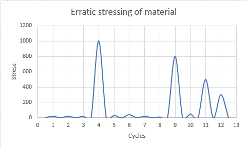 In this case the damage to the material is cumulative; the application of a low number of large stresses reduces the number of smaller stress cycles that the material can withstand.