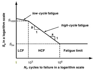 The higher the stress applied, the smaller the number of cycles a sample can withstand prior to fracture. With sufficiently low applied stress the material will never fracture (at least with martensitic and ferritic steel), and this stress level is known as the “fatigue limit” or “endurance limit” [6]: