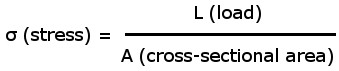 There is a brief intro to tensile testing in the article on flexing and bending. In the tensile test a material is pulled until it fractures. The stress (σ) is the load divided by the cross section, and strain is the change in length divided by the original length. Therefore, stress and strain are normalizing terms that are affected by the size of a specimen. A load applied to a small sample results in a larger stress than the same load on a large sample. With the definition of toughness given by the area underneath the stress-strain curve, greater values of toughness are given by stronger materials (high stress) with high ductility (high strain).