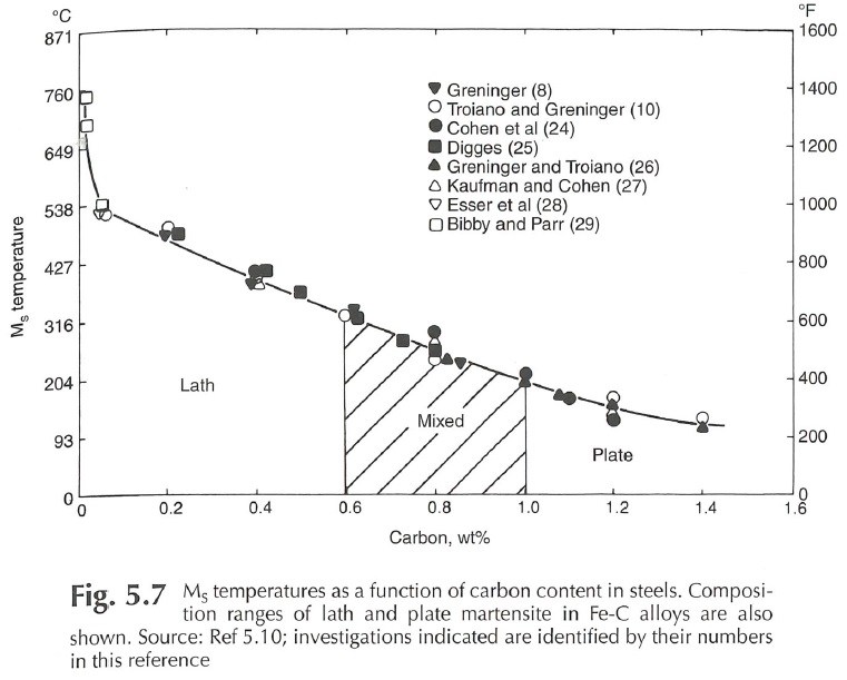 >The paper you referenced on getting lath martensite in very high carbon steel was attributed to the ultra fine grain size, not marquenching.