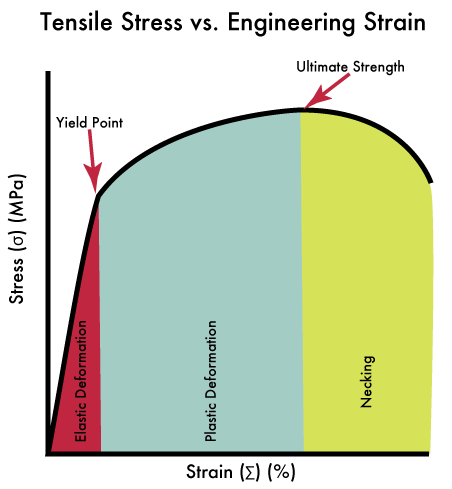 Hardness correlates well with strength. A more complete strength test is called the tensile test where a bar of steel is pulled until it breaks. A compression test is similar but usually uses a cylinder and the steel is compressed until it breaks. The two stress-strain “curves” end up looking similar except for brittle materials which fail prematurely in a tensile test.