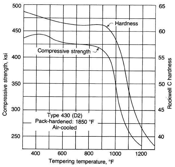So just like with retained austenite the knifemaker may be deciding to temper at lower temperatures in an attempt to increase strength but the property they are changing may be different than what they think they are. Reducing the tempering temperature from 400 to 300°F may increase hardness and ultimate stress but reduce yield stress. Therefore the resistance to edge rolling may not be increased despite the increase in hardness.