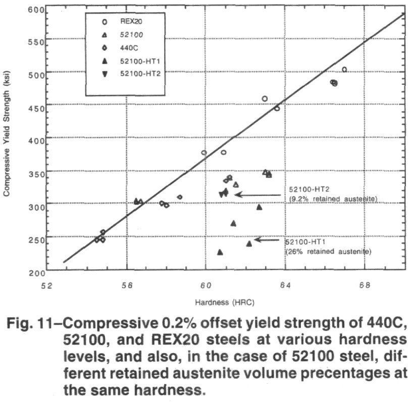 For one more example, here is a study that compared yield stress and hardness and found that retained austenite in 52100 led to a similar behavior [9]: