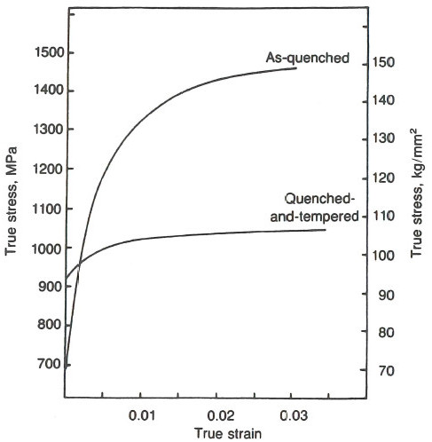 Another case where yield stress and ultimate stress may not perfectly correlate is with tempering of steel. With untempered steel there is a low yield stress relative to its ultimate stress and hardness [10]. With low temperature tempering the ultimate stress is reduced but the yield stress is increased. With further tempering the yield stress will eventually reach a point below the original untempered state due to the overall softening of the steel.