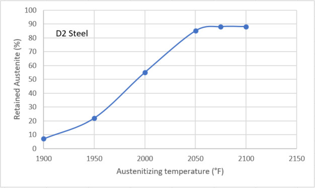 Despite having a much smaller amount of austenite, tool steels with retained austenite also see a transformation to martensite when sufficient stress is applied. Cryogenic processing of tool steel is sometimes recommended to avoid the formation of untempered martensite during the life of the tool. A study on D2 steel found that relatively low levels of stress can lead to the transformation of austenite to martensite [26]: