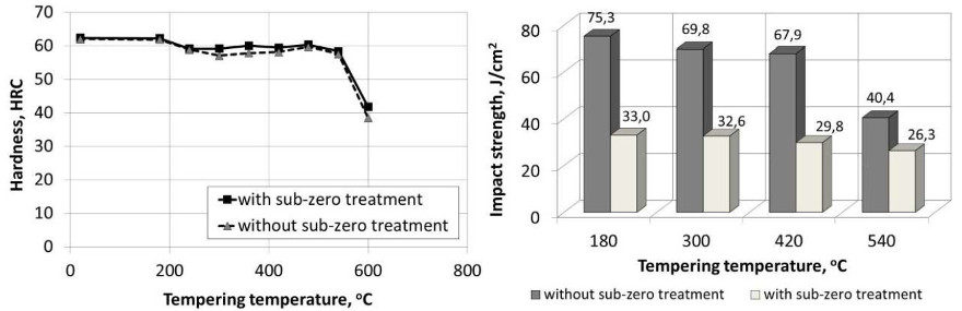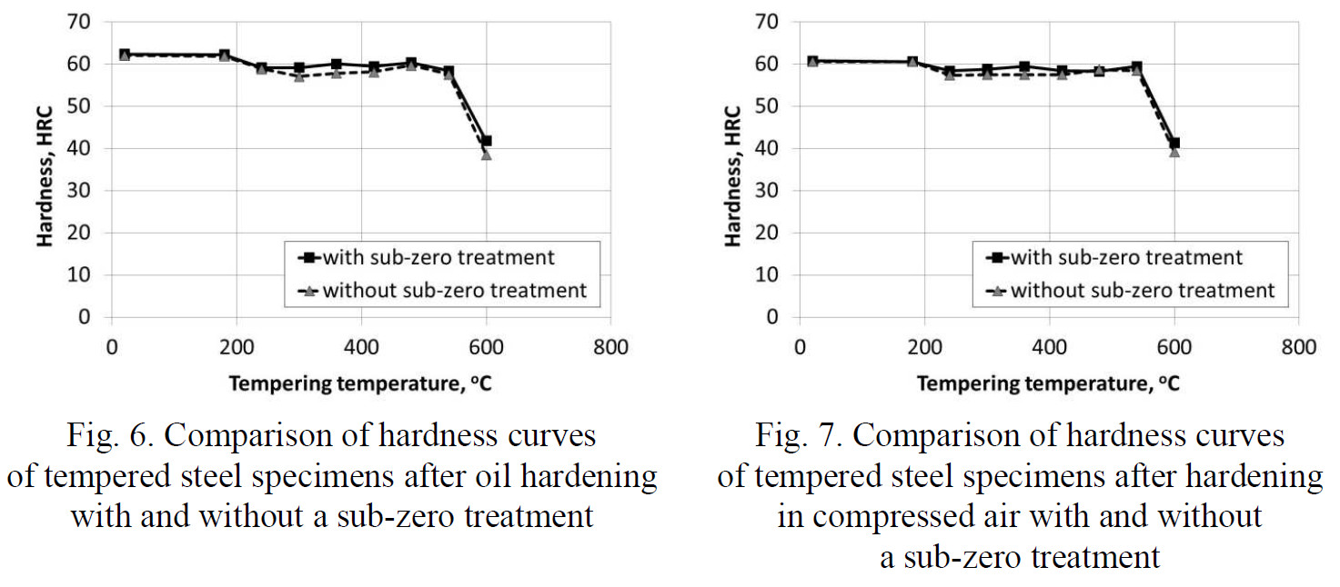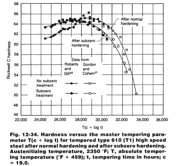Subzero or cryo processing prior to tempering also shifts the tempering-hardness curve to lower temperatures when using the secondary hardening range of tempering [2]: