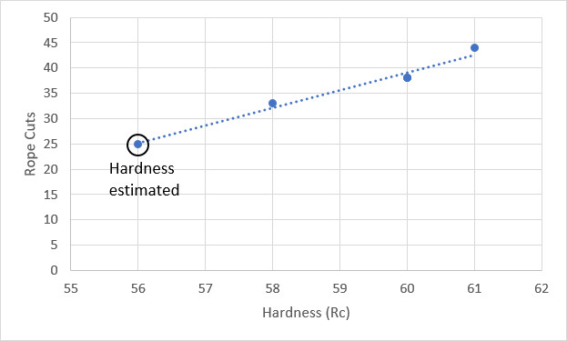 Wayne Goddard performed rope cutting tests with and without cryogenic processing with 440C, 154CM, and ATS-34 [21]. Cryogenic processing led to an improvement in edge retention due to an increase in hardness, but when compensated for hardness there was no difference. For example, the cryo treated ATS-34 was 60 Rc while the non-cryo 154CM was also 60 Rc, with a cryo step the 154CM reached 61 Rc. These steels are identical so the 1 Rc difference in hardness is likely due to small differences in composition or heat treatment between the two knives. However, both of the 60 Rc knives achieved the same number of cuts with 38. The 61 Rc cryo-treated 154CM reached 44 cuts. Therefore, cryogenic processing did not lead to an improvement in edge retention apart from the change in hardness from the transformation of retained austenite: