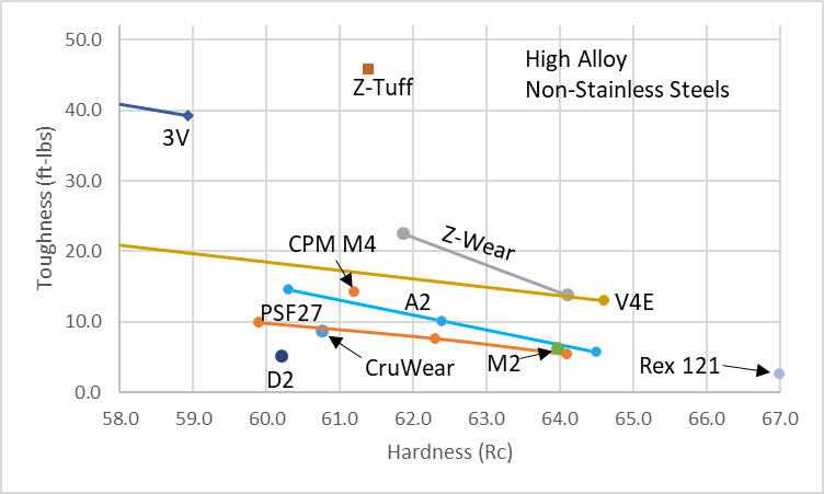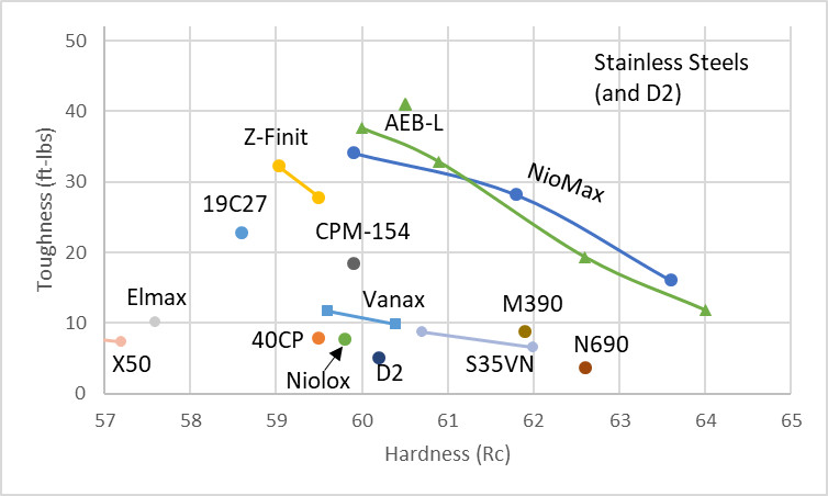 2/24/2020: I added 420HC, CPM-T15, Rex 76, S125V, SPY27, and Z-Max/Rex 86