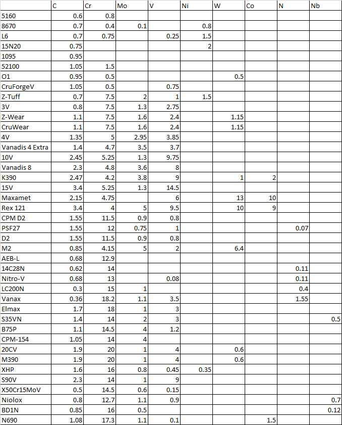 Here is another knife steel “recipe hypothesis”. I am just an enthusiast, and I am still learning, but as I learn about knife steels I can not help but get ideas. Please excuse any foibles; I appreciate the very helpful work that you do.
