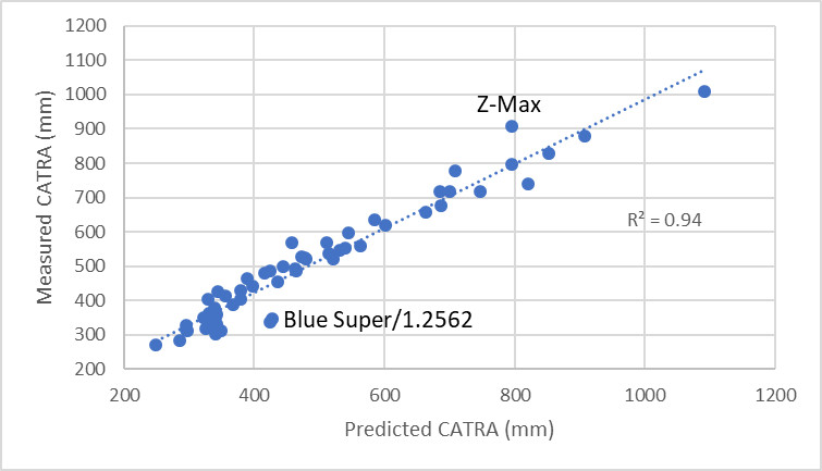 Can CATRA Predict Rope Cutting Performance? – a comparison between rope cutting experiments performed by three different testers and CATRA tests. They line up relatively well with each other.