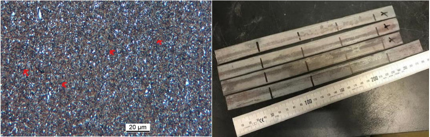 Marco achieved a very excellent improvement in toughness of 1.2562, despite the very high carbon content of the steel and the difficulty in avoiding brittle plate martensite. He also successfully eliminated the undesirable grain boundary carbide networks through the forging process. This improvement was probably due to grain refinement which led to the reduction in plate martensite, but marquenching may have also been a factor. This shows the desirability of grain refinement in very high carbon, low alloy steels to avoid plate martensite and greatly improve toughness. This allows forging bladesmiths to achieve good toughness in combination with improved wear resistance with these types of steels.