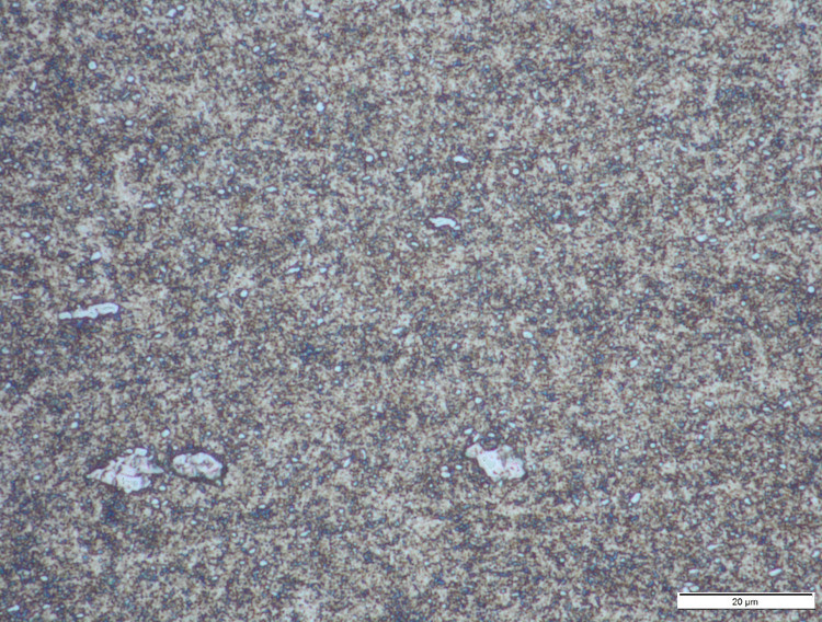 In terms of the carbide structure itself, CruForgeV is mostly made up of fine carbides, though there are occasional larger vanadium carbides. I have two micrographs which show a region both with and without the larger carbides. This is relatively similar to 1.2562 and Blue Super steels which also have some larger carbides, though in this case WC. The forging steels with somewhat reduced vanadium/tungsten carbides have a more consistently fine structure throughout like 1.2519, 1.2442, and V-Toku1.