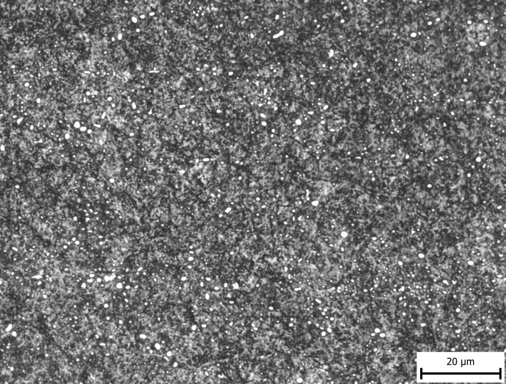 - Temper annealing – similar to a subcritical anneal but starting from a martensitic microstructure. The steel was austenitized at 1450°F for 10 minutes followed by oil quenching, then performed again, followed by 1250°F for 2.5hrs.