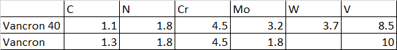 Vanax 1975°F – 10-12% chromium carbonitride, 4% vanadium carbonitride