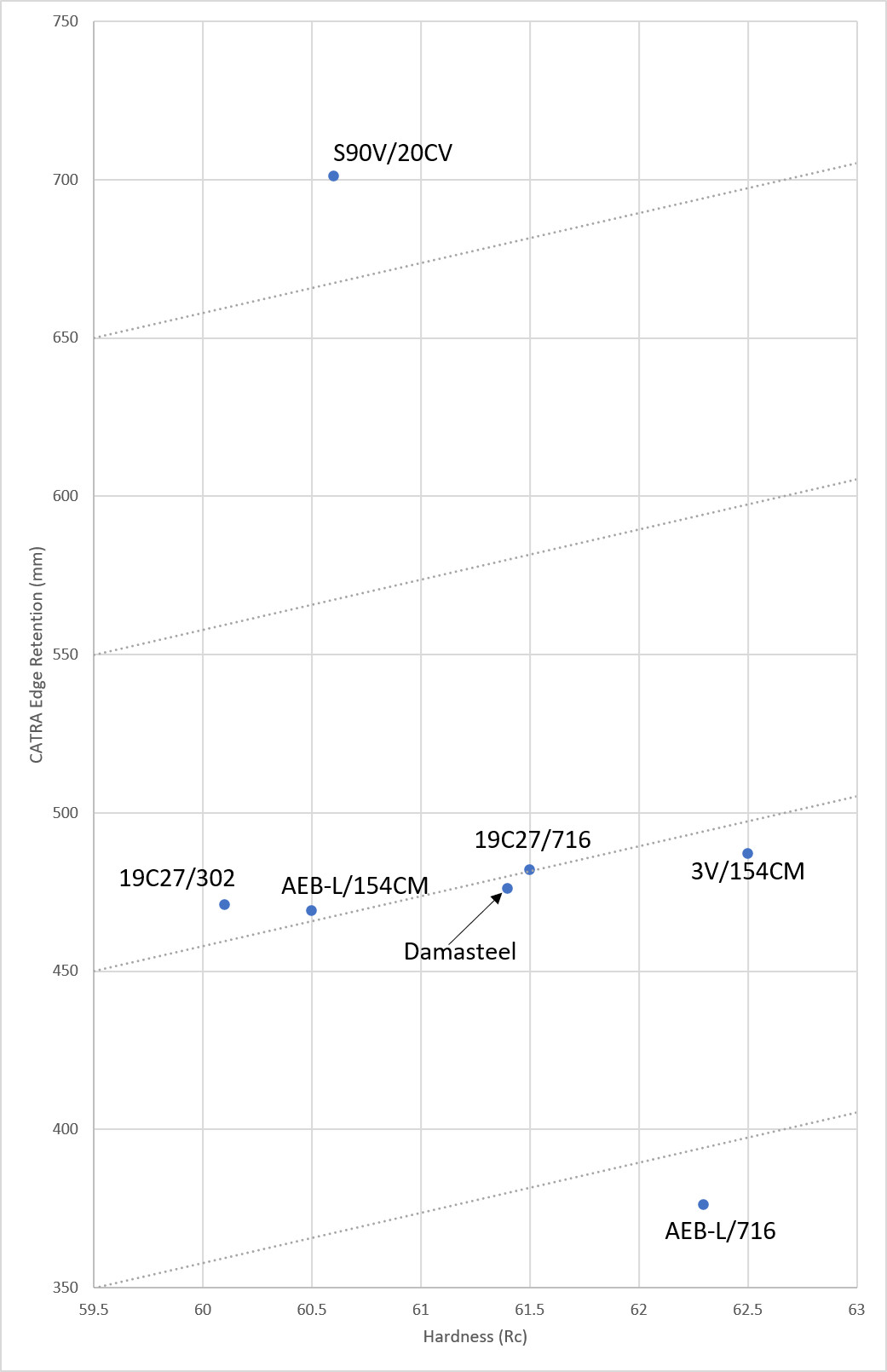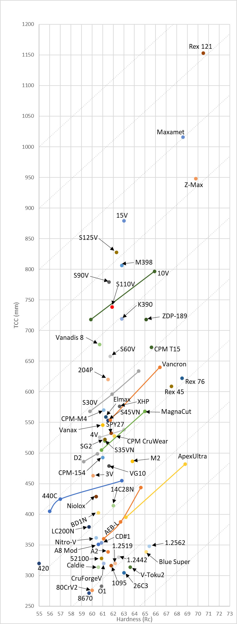 A giant chart of other steels to compare against