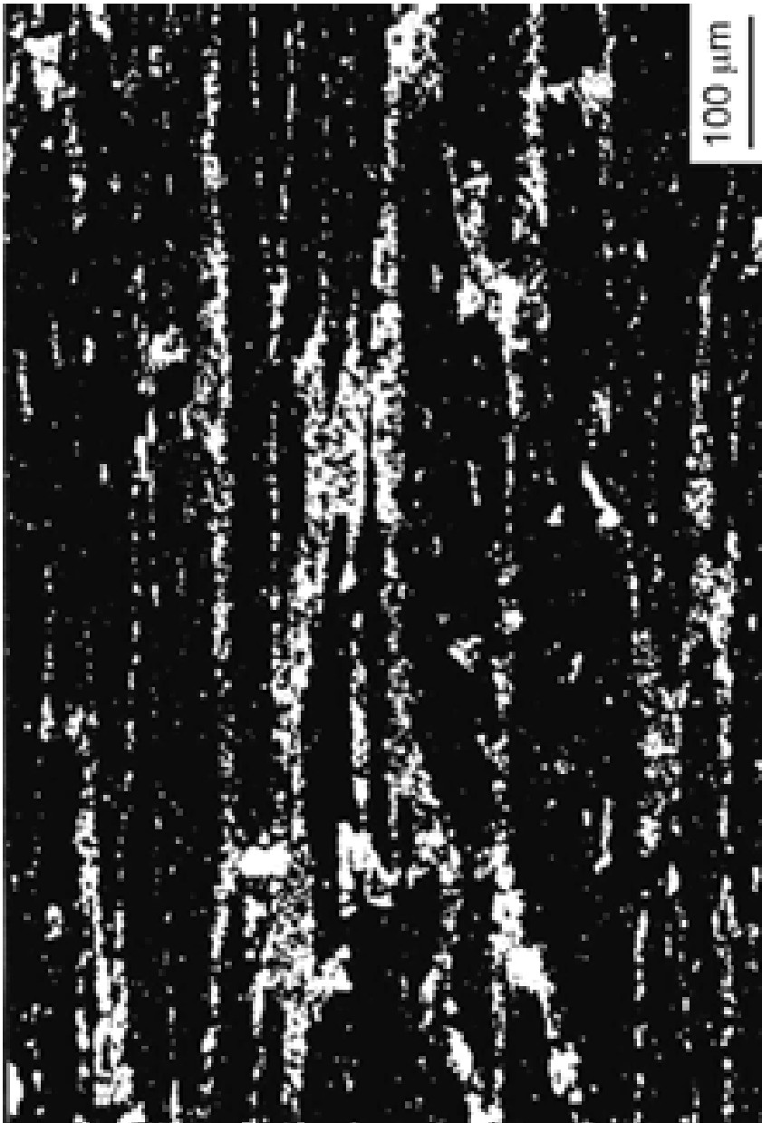 Carbide banding in high speed steel (rolling direction is vertical) [4]