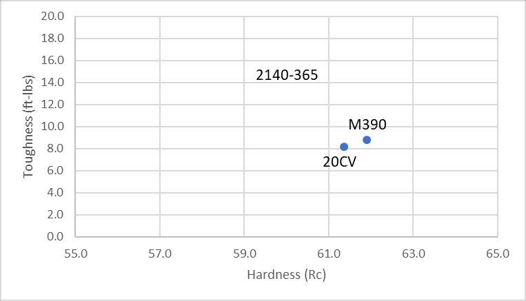 However, these differences did not lead to a difference in measured toughness, as M390 and 20CV had the same toughness:
