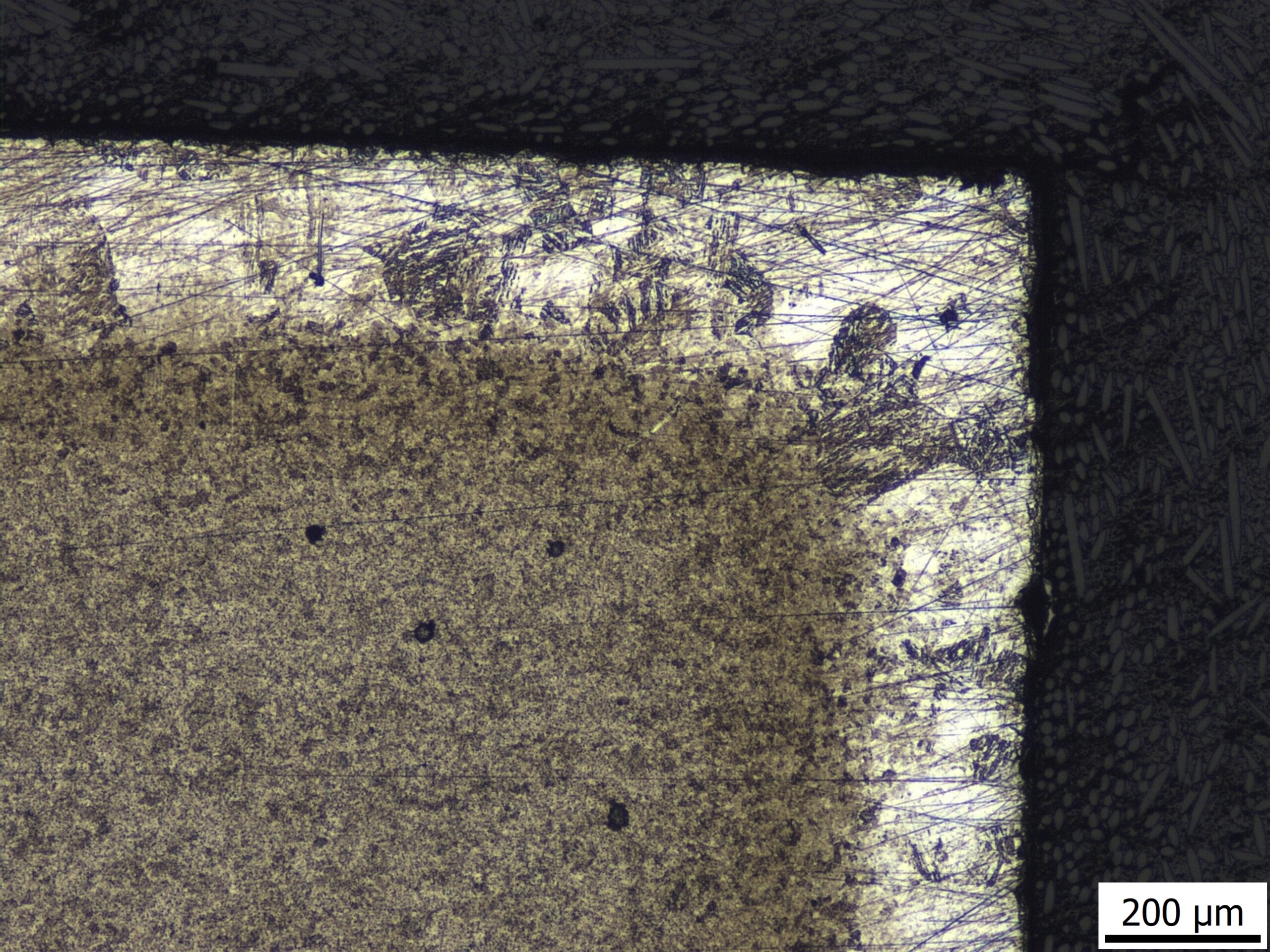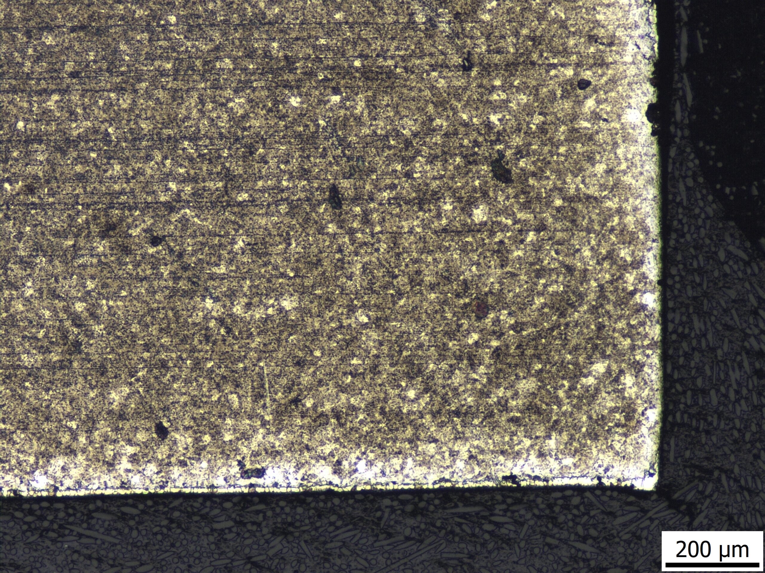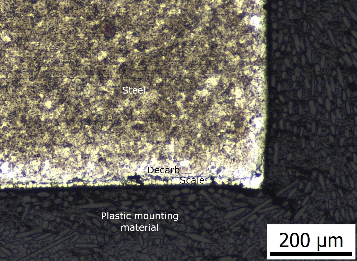 Surprisingly there is what looks like a thin decarb layer visible in the cross-section. Perhaps the little bit of oxygen that interacts with the steel is enough for a small amount of decarburization.