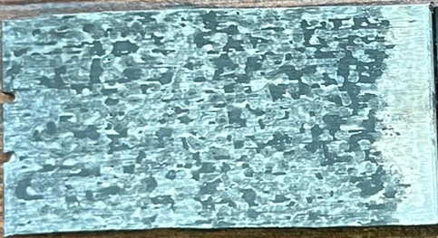 I did three experiments with the different coatings. Each used a 1/8 x 3/4 x 1-1/2 inch (19 x 38 mm) coupon. They were finished to 120 grit and cleaned with soap and water prior to dipping in one of the coatings, followed by letting them dry for 24 hours. The 1095 coupons were only finished to 60 grit and the Condursal Z1100 coupons were only finished to 60 grit. I also tried brushing the NoScale2000 which I will explain in that section. A “bare” sample was also tested with each without a coating.