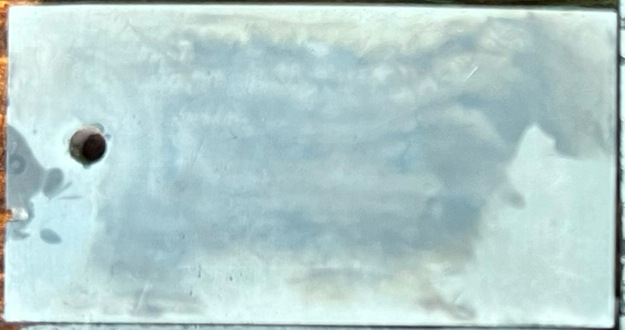 1095 NoScale2000 coupon after quenching in Parks 50 oil. The coating remained on the steel.