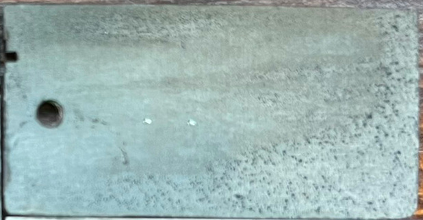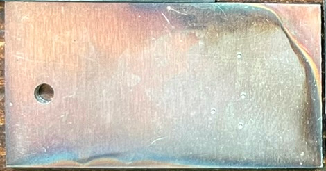 The 1095 Turco coupon had some scale that formed, lining up with the grinding marks. Perhaps this was because of the coarser 60 grit finish on the 1095 coupon vs the 120 grit on the 52100 and AEB-L coupons. The 52100 coupon had some discoloration and it is hard to tell if it was scale or not but otherwise looked good. The AEB-L perhaps had some light scale that formed but otherwise looked very good.