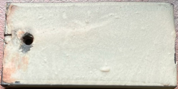 Surprisingly the 1095 coupon coated with ATP-641 had some spotty scale that formed, not looking too different than the uncoated coupon. The 52100 coupon, however, didn’t have any obvious scale just some discoloration. But the AEB-L coupon formed scale and didn’t look very different than the corresponding uncoated coupon.