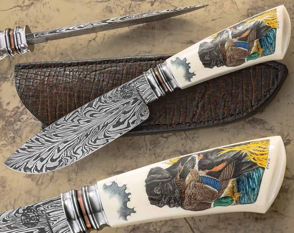 [3] Dunkerley, Rick. “His Forge Burns Hot for Mosaic Damascus.” Kertzman, Joe, ed. Blade’s Guide to Making Knives. Krause Publications, 2005.