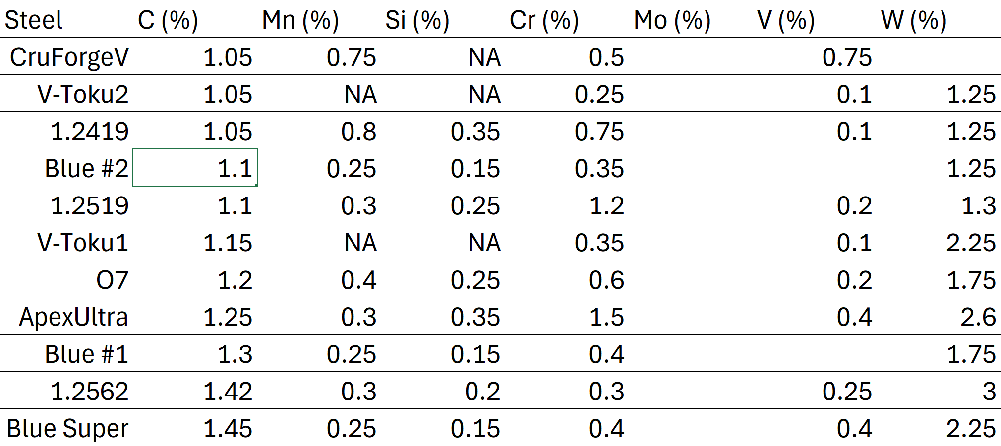 This article got too long so I will be discussing stainless steels, high alloy steels, and San-Mai laminates in a future article.
