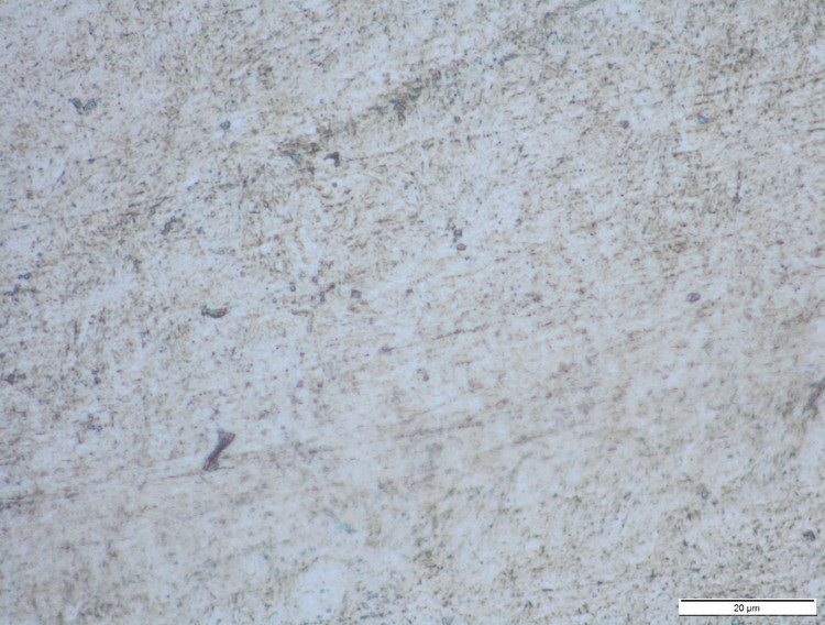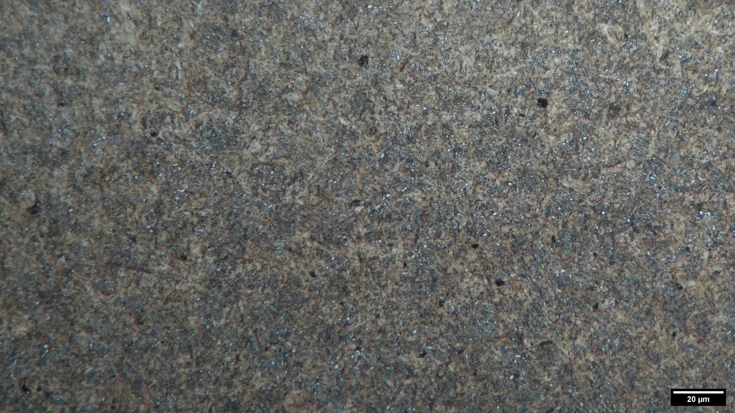 Polished (unetched) surface of tamahagane. Black particles are inclusions.