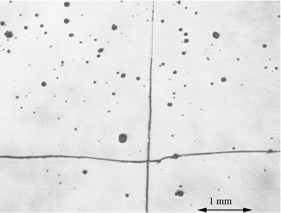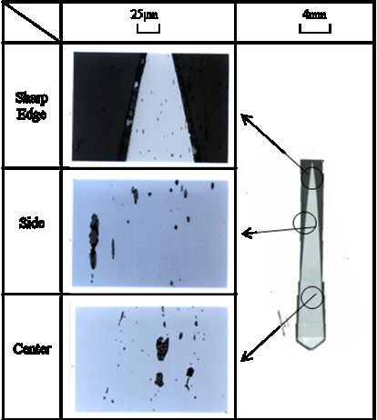 Inclusions in pre-1596 AD sword (cross-hair scratch added intentionally) [3]