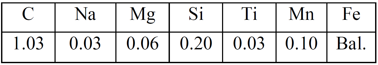 However, the carbon content is not always perfectly distributed throughout. Analysis of a modern kogatana knife (utility knife) produced by Sadanao Mikami had a range of carbon from 0.6% on one end to 2.0% on the other [5-6]. The uneven carbon content can come from distributions within the original pieces, mixing of low carbon and high carbon pieces (often done intentionally), and performing an insufficient number of forge-folding operations to even out the carbon. They reported that the average carbon content was 1.03% for the entire knife [5]. There were also small amounts of other elements: