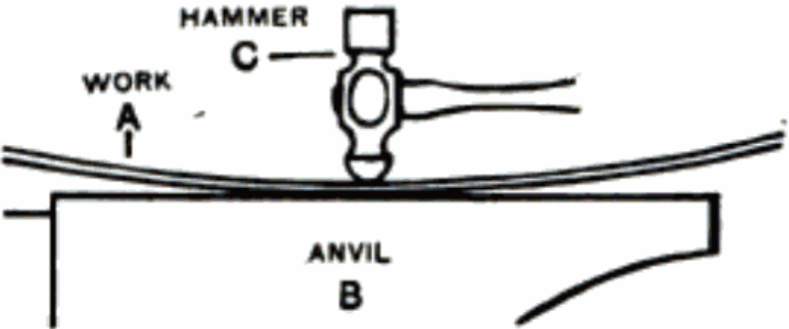 Straightening pieces by peening has been around for over 100 years. For example, here is one illustration of how to do it from 1910: