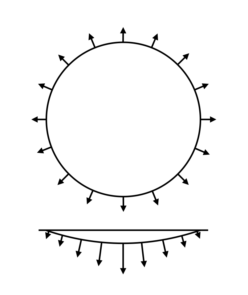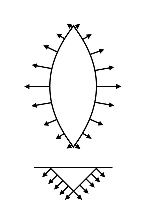 Schematic illustration of the movement of material around a chisel impact on the knife. Image from Kyle Daily.