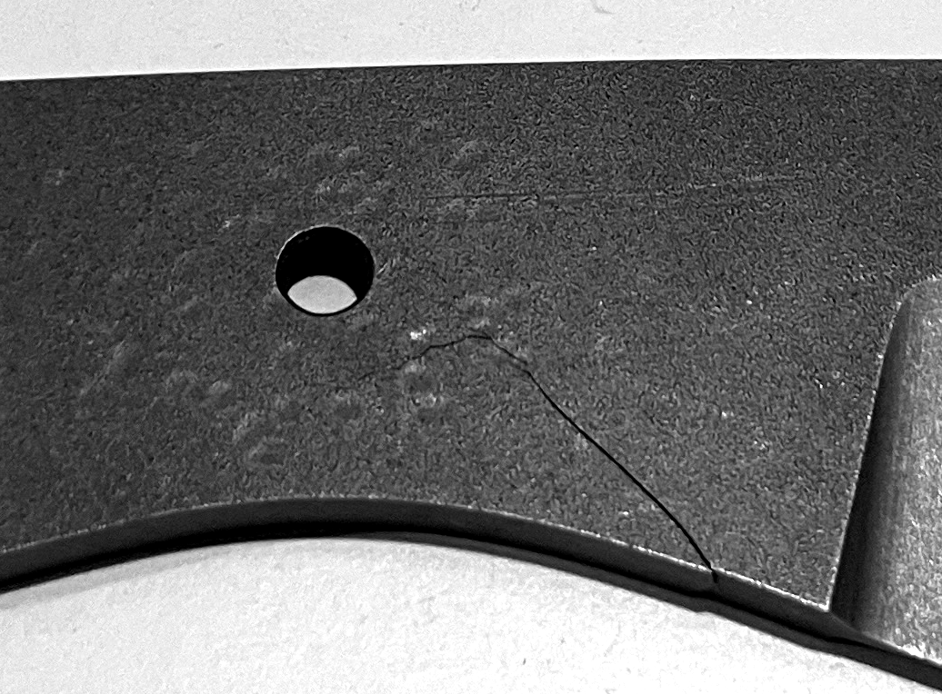It is a bit hard to tell in the pictures but these were relatively deep peening marks. It appears that this steel was “over peened” and thus cracks were formed in the surface of the steel and grew from there.