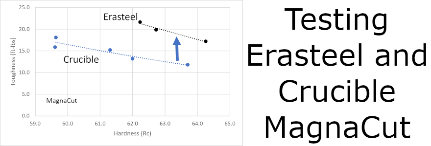 MagnaMax has been in development for a long time. When I first proposed the idea for MagnaCut to Crucible and Niagara in June 2019 I also proposed a high wear resistance version I was calling “stainless 10V.” This version was intended to match the combination of toughness and wear resistance in the non-stainless grades K390, Vanadis 8, and CPM-10V. K390 has developed some popularity in recent years from Spyderco using it in many knives. This steel hits a real sweet spot for having good toughness with very high wear resistance. That high wear resistance gives it excellent edge retention. MagnaMax achieves that same level of toughness and edge retention but with the same excellent corrosion resistance of MagnaCut. MagnaMax achieves these properties by using the same general approach to composition as MagnaCut while increasing carbon, niobium, and vanadium for wear resistance. We are still waiting for the ok from our patent lawyer before releasing the composition, but that will hopefully come soon. The first commercial “heat” of MagnaMax has been delivered to a few knife companies, so it is time to talk about the steel, even if we can’t reveal every detail yet.
