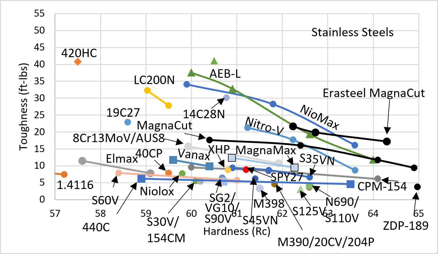 Comparing the edge retention and toughness at the same time, MagnaMax also looks excellent on the chart: