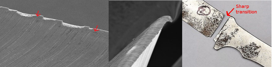A common engineering technique is to evaluate designs based on how they failed, or may fail. Failure modes are identified and the designs are modified to prevent those failures. These ideas are simple in concept but it is surprising how easy it can be to miss the forest for the trees. In terms of predicting failure modes in some cases it is easy and in some it is difficult. You would expect a large chopping knife to require heavier edge geometry to prevent chipping and rolling, or a seawater diving knife to require high rust resistance. Other times failure modes are identified through testing of the knife or by returns from customers. Whatever the source of the failure, there are usually relatively simple methods for fixing each one, though the trade-offs for doing so may not be desirable.