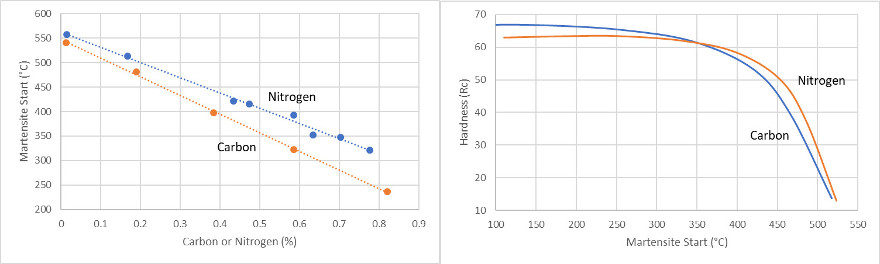 Vanax is an interesting steel because of its good combination of toughness, wear resistance, and corrosion resistance. I wrote about Vanax along with other nitrogen-alloyed steels in this article, to describe how the steel is designed. While the datasheet shows it being capable of 59-61 Rc, I was curious about how hard the steel can go. The steel may be good for kitchen knives, for example, where very thin edges and high hardness is common. And kitchen knife users may appreciate the excellent corrosion resistance of Vanax in the presence of water, salt, and acidic foods.