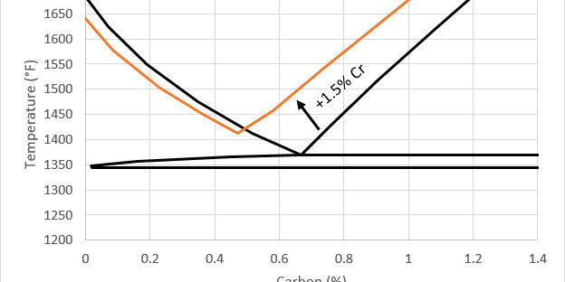 A2 steel is quite old, though determining the exact year it was released is a bit difficult. A2 steel was developed in the early 20th century during the explosion of tool steels that occurred after the discovery of high speed steel which was first presented in 1900. You can read about that history in this article: The History of the First Tool Steel. During the development of the first high speed steel included the switch from manganese to chromium as the primary hardenability element, and most high speed steels had about 4% Cr. That high chromium content was primarily for “hardenability” which is the degree of cooling required to achieve full hardness. A “water quenching” steel has low hardenability and must be quenched very rapidly from high temperature, and an “air hardening” steel can be left in air and it will fully harden. You can read more about hardenability in this article on quenching. The first high speed steel came to be known as T1, which had 4% Cr and 18% W (tungsten). The earliest record I have found of a precursor A2-type steel is in a summary of tool steels in 1925 [1], while summaries of tool steels from 1910 [2] and 1915 [3] do not have any similar steels. Therefore these types of steels probably arose sometime between 1915 and 1925.